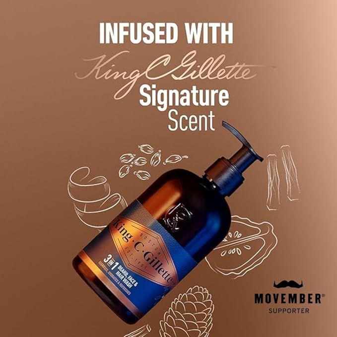 King C. Gillette Beard Wash, Mens Face Wash, 11 oz, Infused with Argan Oil and Avocado Oil to Cleanse Hair and Skin