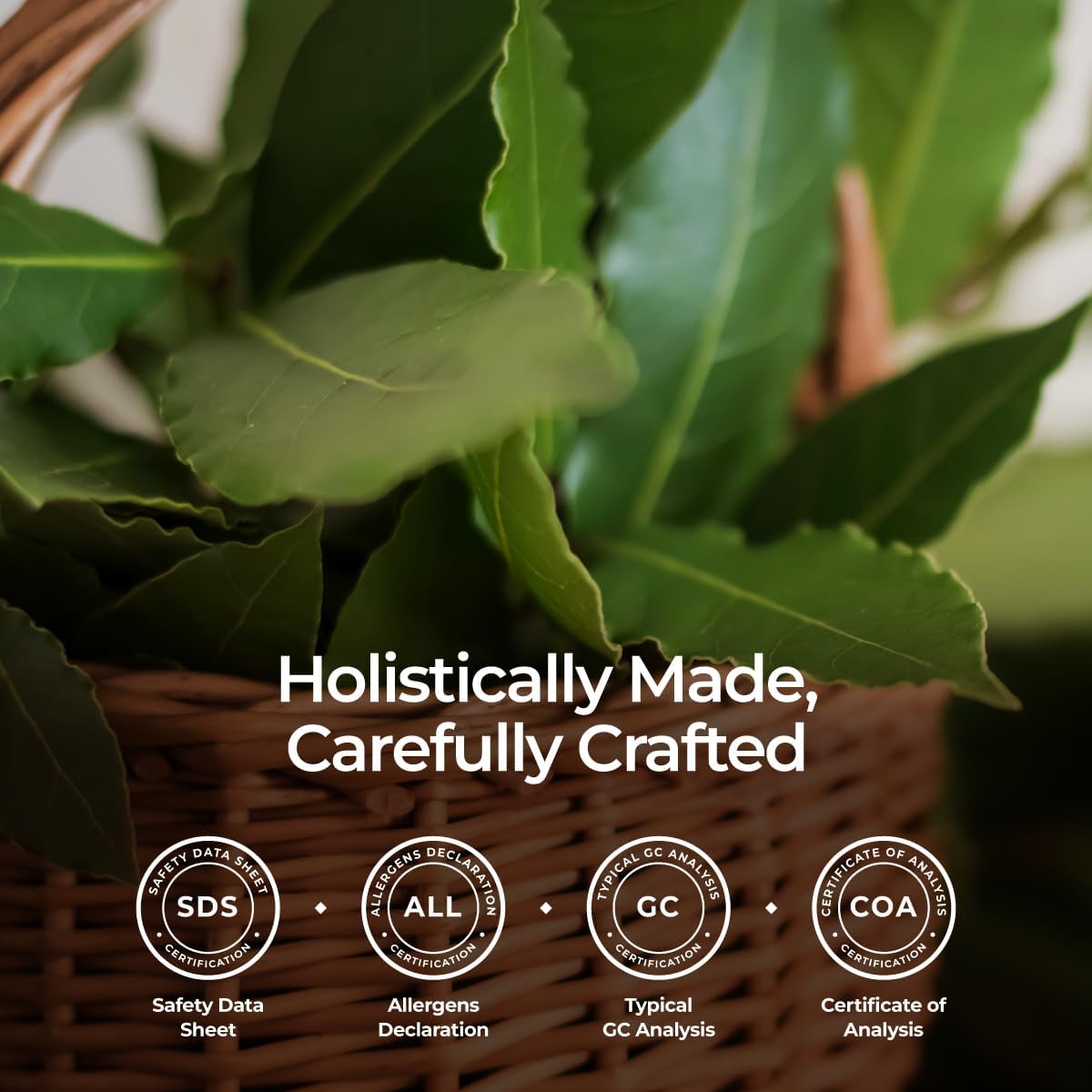 - A trusted name in aromatherapy oils. Gya labs' organic bay leaf essential oil is made from Turkish bay leaves. The result is a crisp, camphorous scent that may be calming & enjoyable to some.