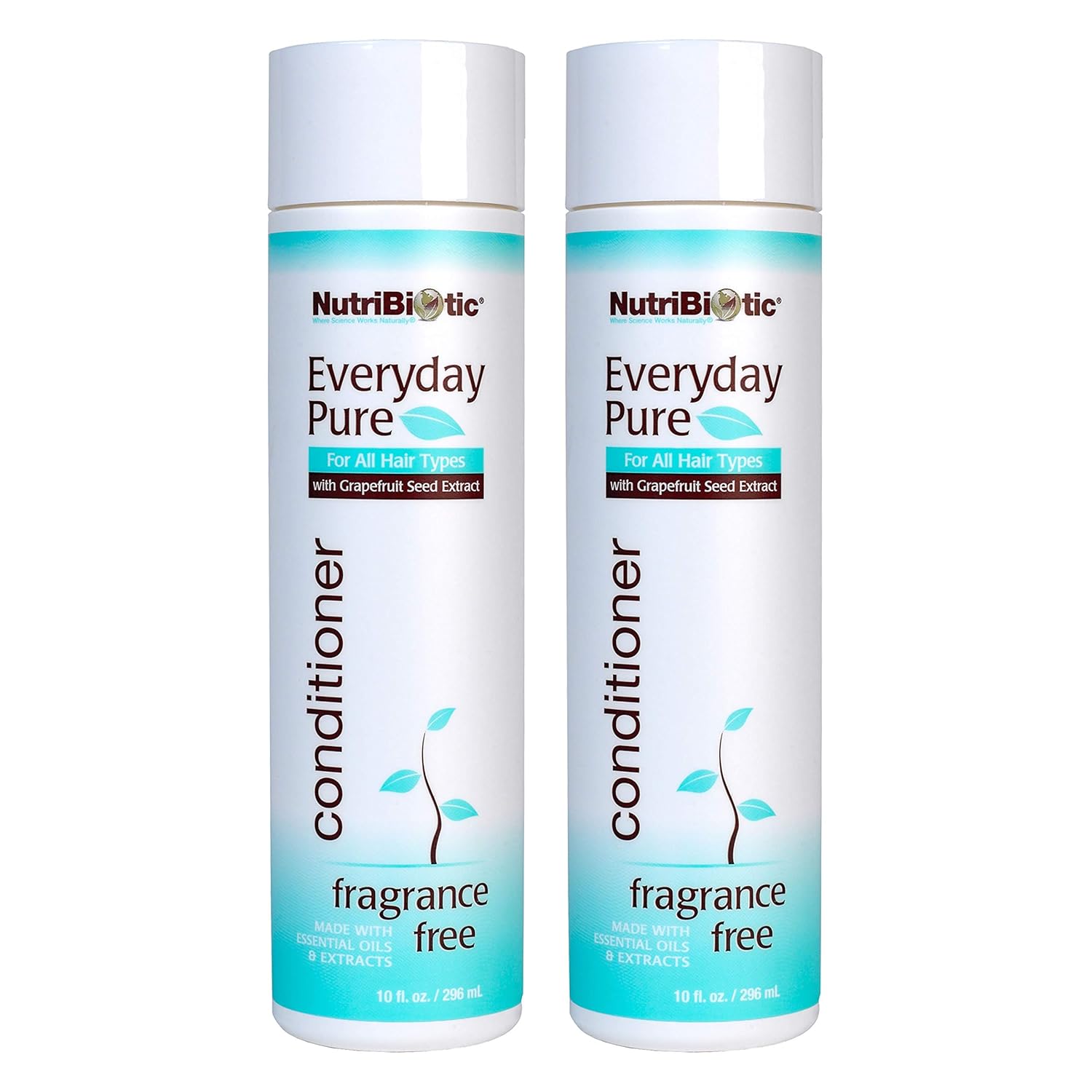 NutriBiotic Everyday Pure Conditioner 10 oz. Fragrance Free - For All Hair Types TWIN PACK Free of Parabens, Sulfates, SLS and SLES, dyes or colorings, cocamide DEA, Gluten, or chlorine derivatives