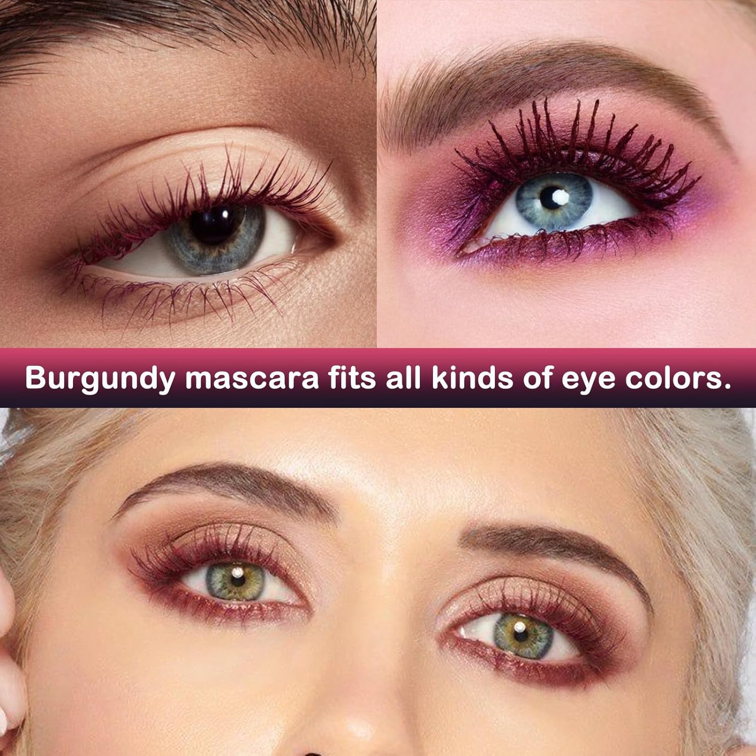 Maydear Burgundy Mascara for Eyelashes, Waterproof Colored Long Lasting Smudgeproof for Women Fast Dry Lengthening Eye Makeup Party - Dark Purple