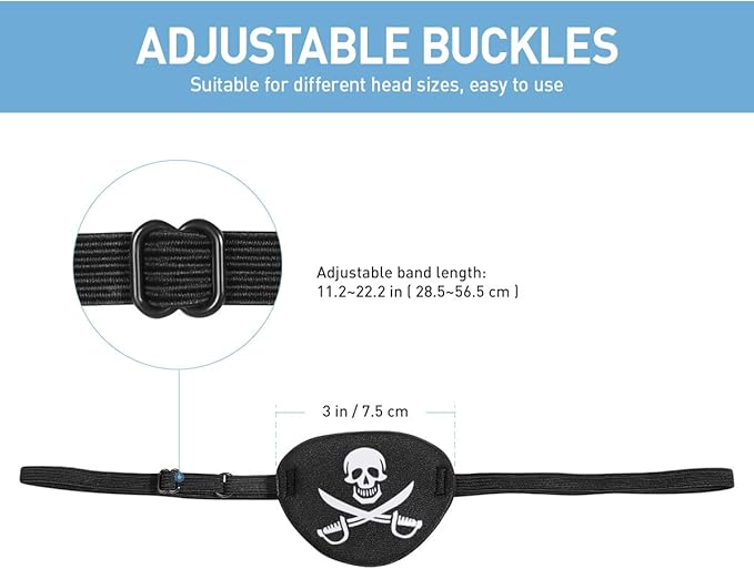 - Adjustable Fit for All Ages - With adaptability at its core, our pirate patches for kids come with an ingeniously designed adjustable strap system, the pirate patches for adults making it universally fitting. Whether it's a toddler setting sail or an adult immersing themselves, this pirate eyepatch ensures a perfect fit, the eye patch for adults molding seamlessly to faces of all shapes and sizes, thereby the pirate eye patch eliminating any concerns of it being too tight or too loose.