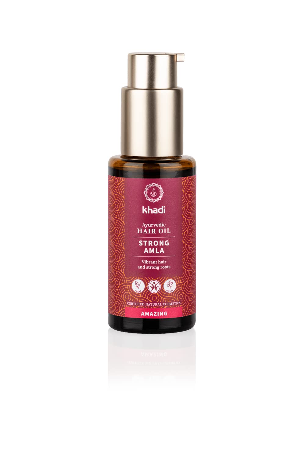 - DISCOVER THE INNER STRENGTH OF YOUR HAIR: Feel the double strength of hair on your head. Strong roots, strong, thick hair and naturally vibrant color. The khadi Strong Amla Elixir stimulates the natural melanin production and gives gray hair new vitality.