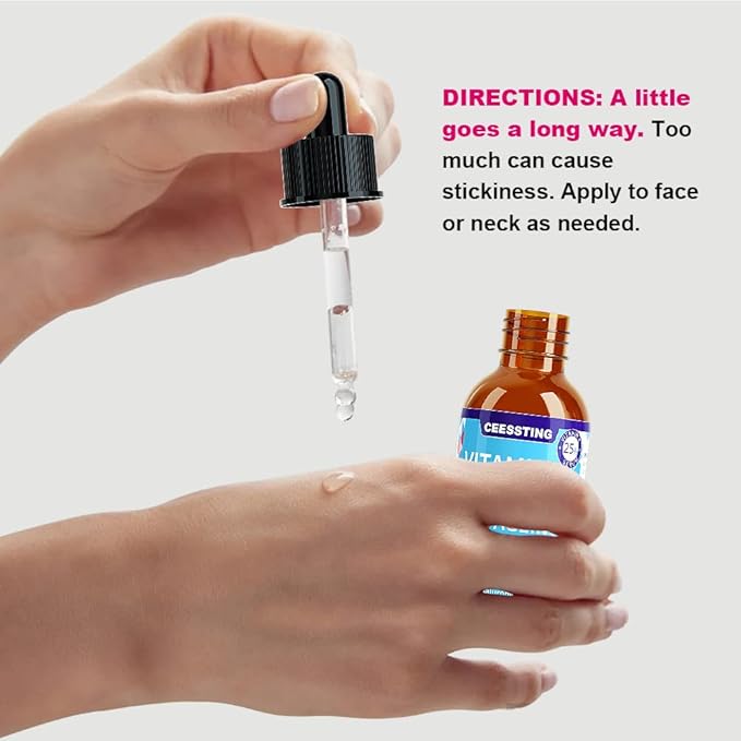 Ceessting Vitamin C Serum for Face - Anti-Aging Facial Serum with Hyaluronic Acid and Vitamin E - Improves Skin Texture, Glow and Elasticity - Reduces Wrinkles, Fine Lines and Dark Spots - 1 oz