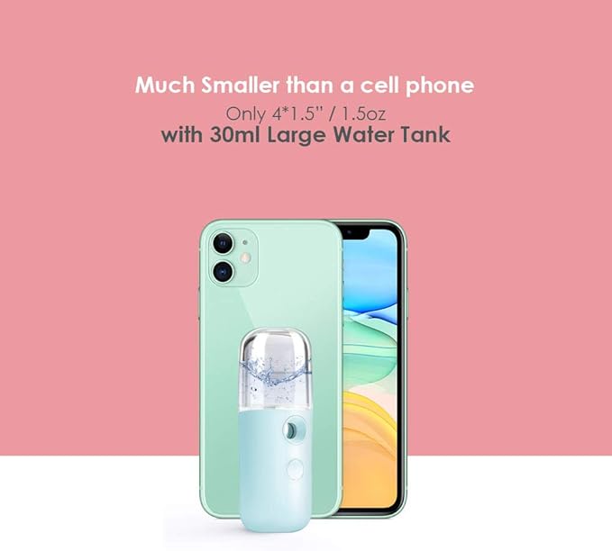 - 30 ml Large Water Tank: This facial mister is designed with a patented inner clean system and a 30ml large water tank making sure the soothing mist is 100% clean. It also has a built-in 500mAh quality battery, 100 times silent uses for 1 full charge