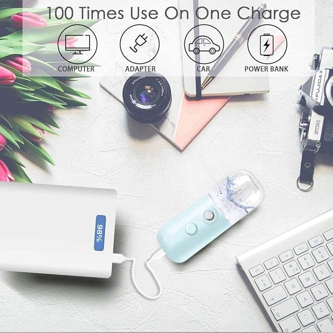 - Portable & Rechargeable: GIVERARE pocket-sized mist sprayer is only 4*1.5”/1.5 oz and USB rechargeable (USB cable included), compact enough for easy storage. Just place it in purse and enjoy the moisturizing at office, flight, outdoor, room and more