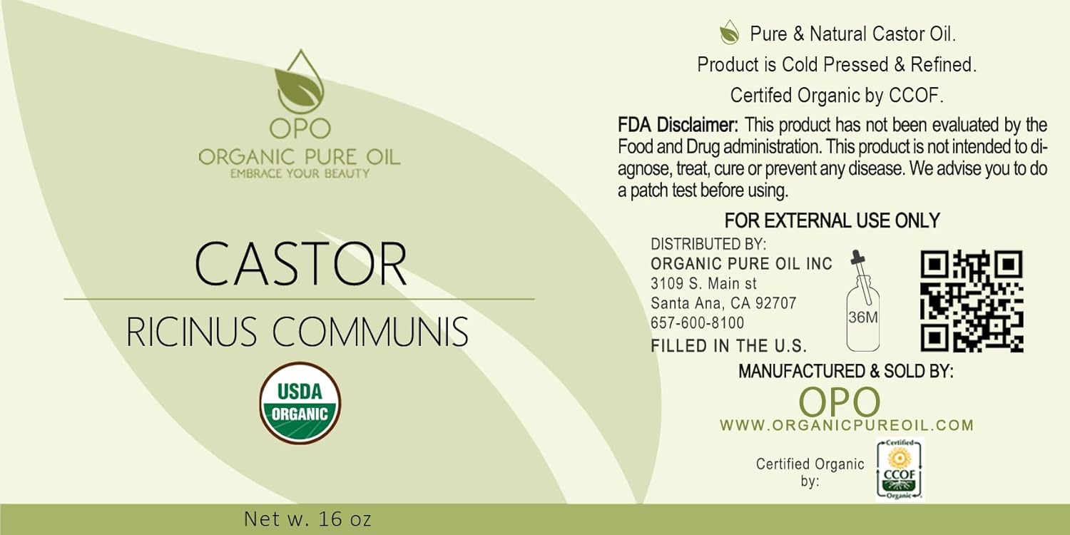 - Organic Pure Oil Pure Castor Oil is pure, cold-pressed, all-natural, odorless, and fully filtered Castor Bean Oil.