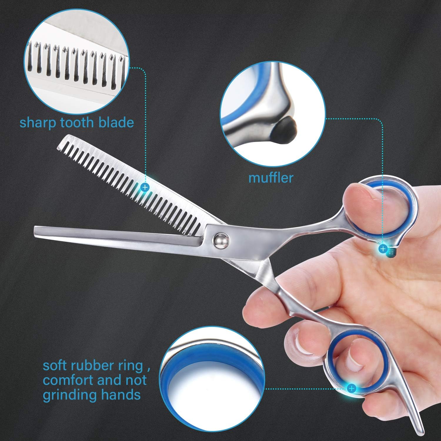 Haircut Scissors Kit, 11 Pcs Professional Set - Haircut, Thinning Scissors, Neck Duster Brush, Comb, Barber Cape, Hair Clips, Hairdressing Shears for Barber and Home