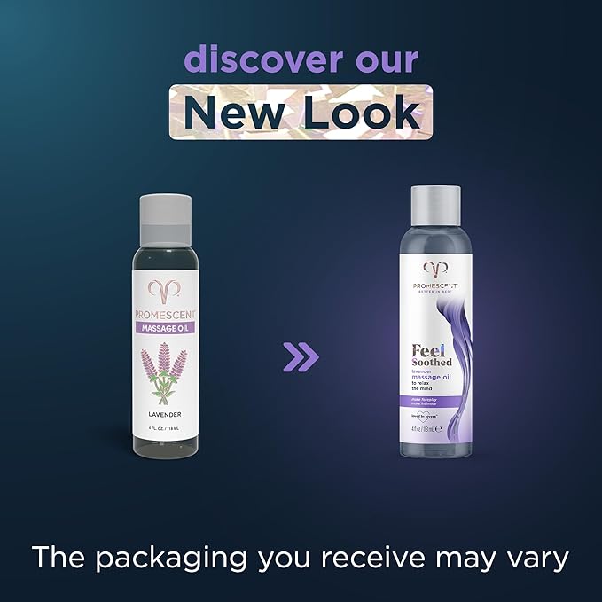 Promescent Lavender Massage Oil for Massage Therapy, Massage Oils for Date Night, Premium Lavender Body Oil for Men & Women to Relieve Stress & Sore Muscles, Essential Oils for Skin (4 oz)