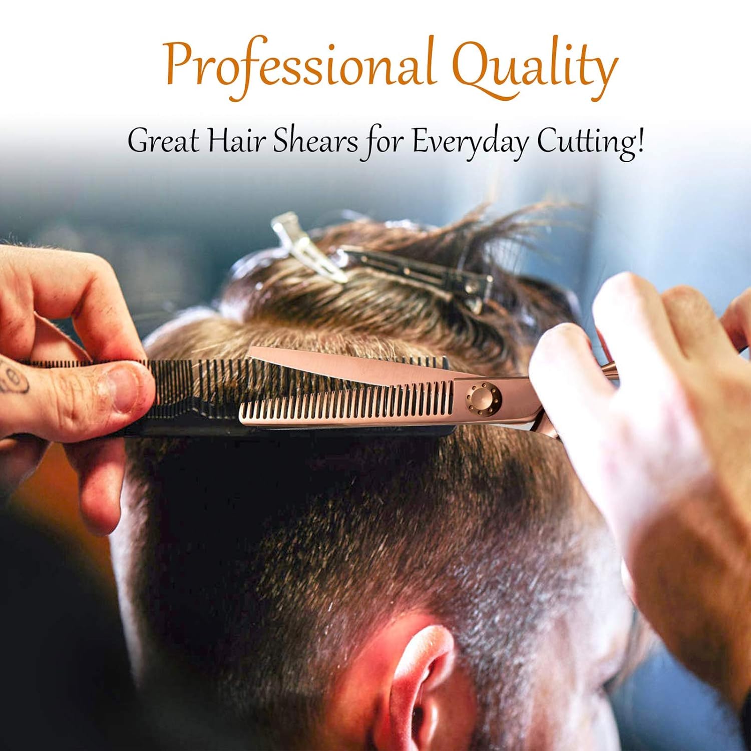 - With razor-sharp blades and ergonomic design, these trimming scissors deliver professional results every time, which are ideal for barbers, hairdressers, and salon owners. Characterized by its easy operation, the barber shears set also a good choice for home use.