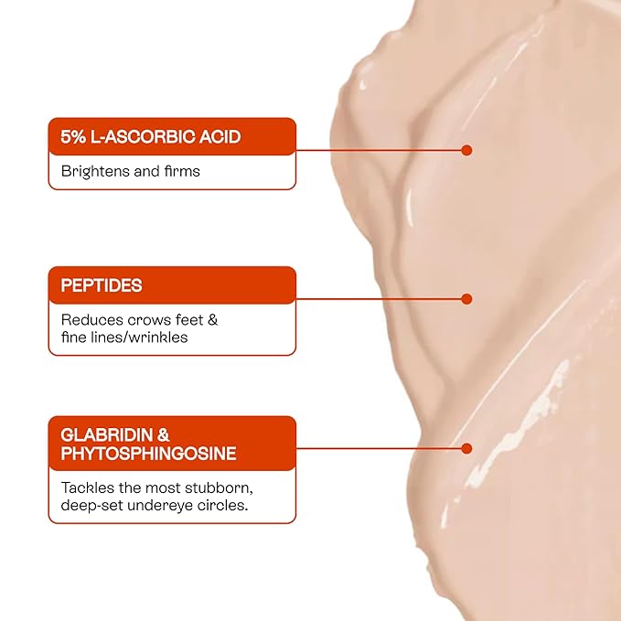 BeautyStat C Eye Perfector Dark Circle Reducing Vitamin C Eye Cream, Made in the USA with 5% L-Ascorbic Acid (Pure Vit C), Hyaluronic Acid - Hydrating, Firming (0.5oz / 15ml)