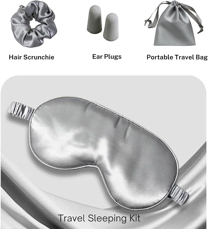 - Unique set combination: The satin eye mask not only equipped with earplugs, but also comes with a satin travel bag and a elastic hair ties rope. No matter in bed, airplane, long-distance driving, or camping, you can sleep lightly and comfortably with the sleep mask, and enjoy uninterrupted, deep, and peaceful sleep