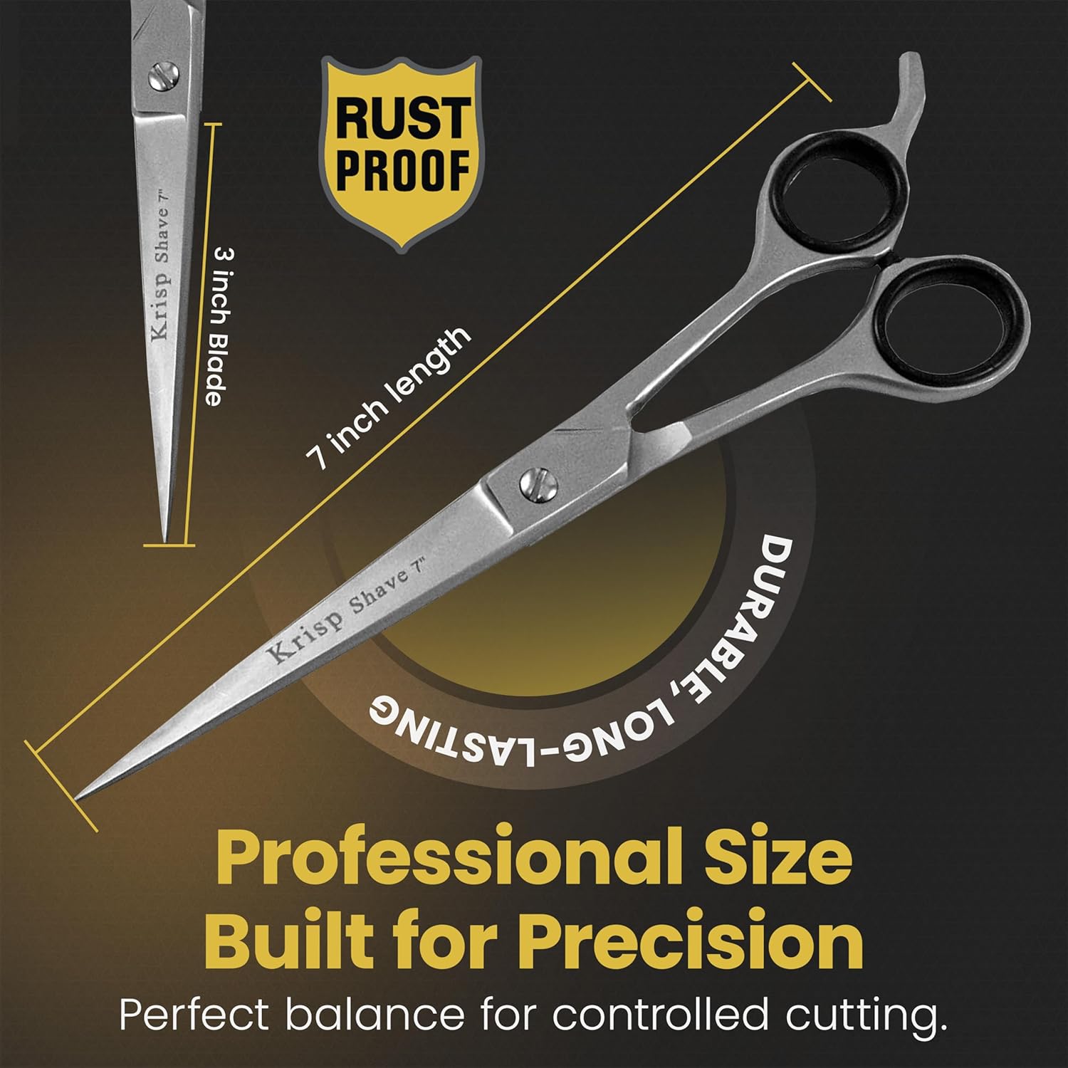 Professional Hair Cutting Scissors - Krisp Shave Japanese Stainless Steel Salon Barber Scissor (7 inch Inch) - Shears for Men's Beard Mustache Women Kids Pets Haircut All Purpose Shear, KSP-784