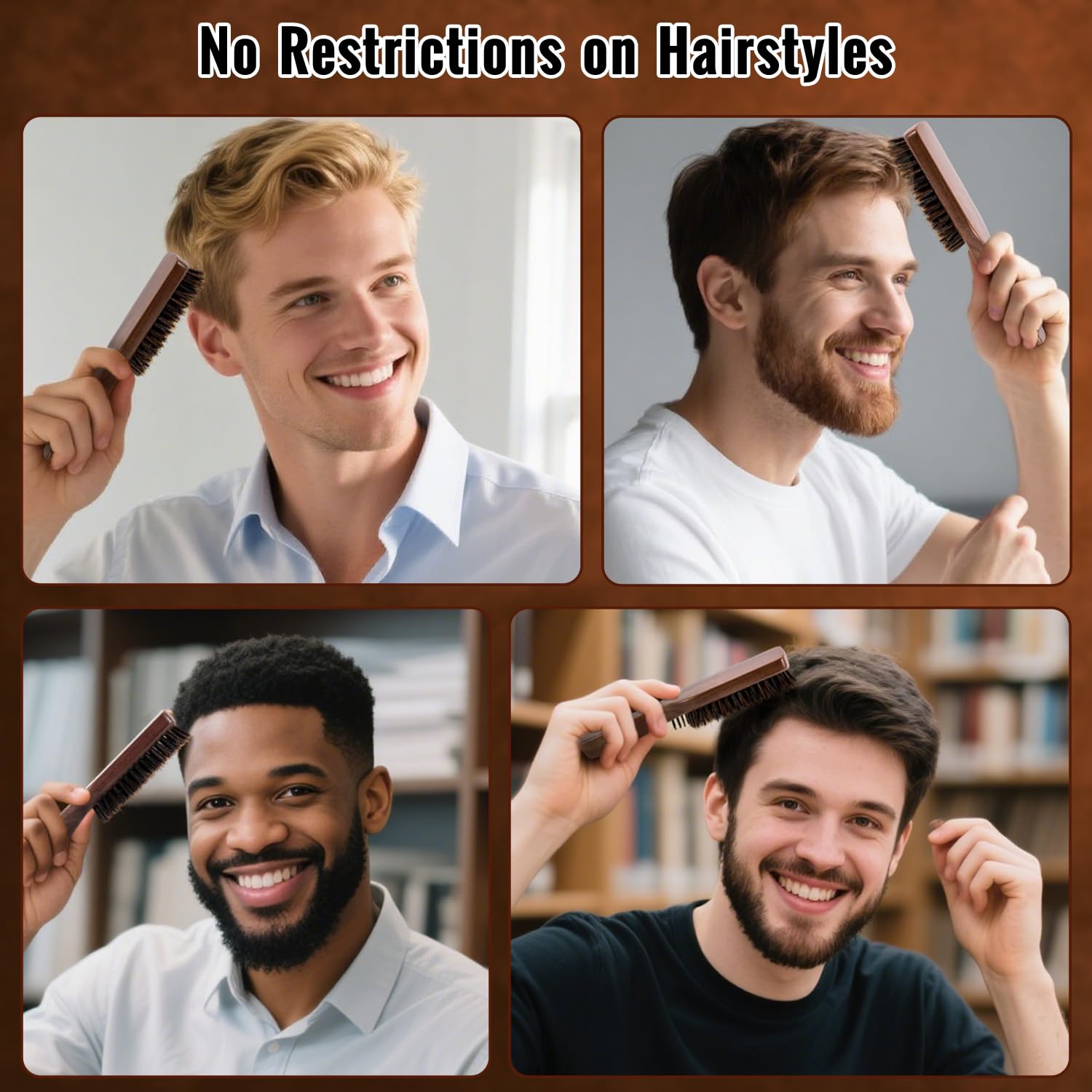 - For Short, Thick Hair - The Pure Wild Boar Bristles Hair Brush keep hair straight and reduce frizz. This mens hair brush works well with any styling product and gets hair looking great after a shower.Wild boar bristle hair brush can reduce the pulling force on hair and also reduce static electricity, which can reduce the risk of hair loss