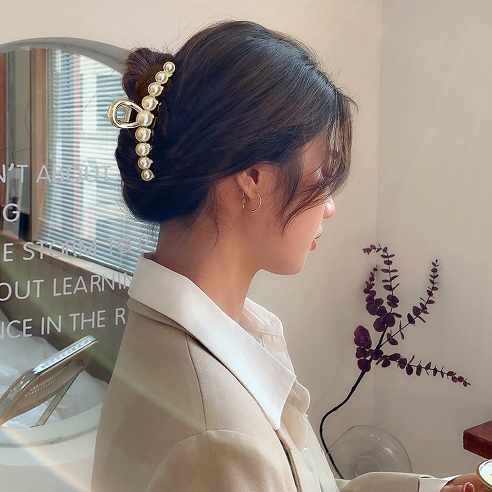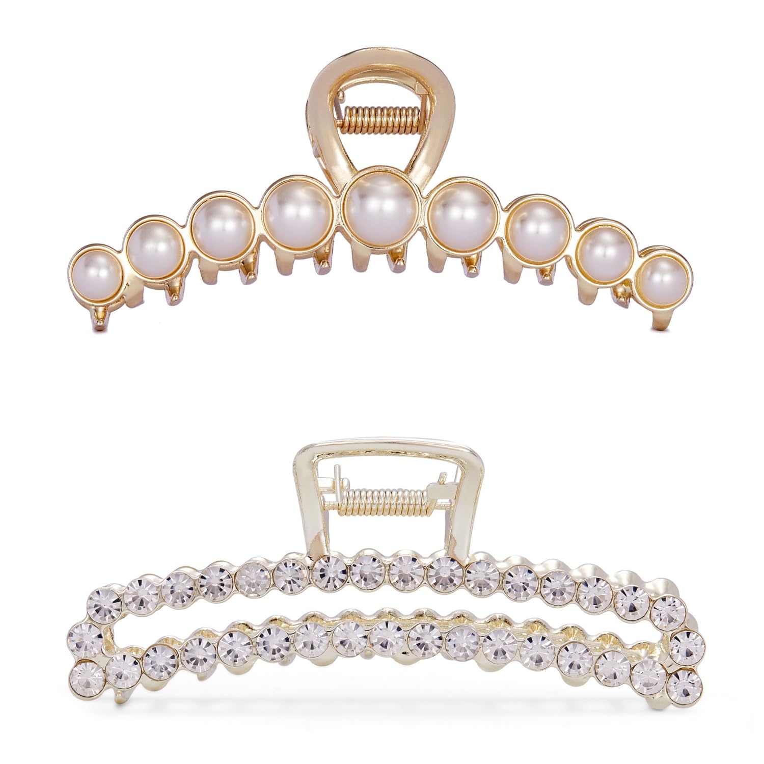 Metal Rhinestone Hair Claw Clips Imitation Pearl Hair Jaw Clips Non Slip Barrettes Hair Clasps Accessories for Women Ladies (2 Pack)