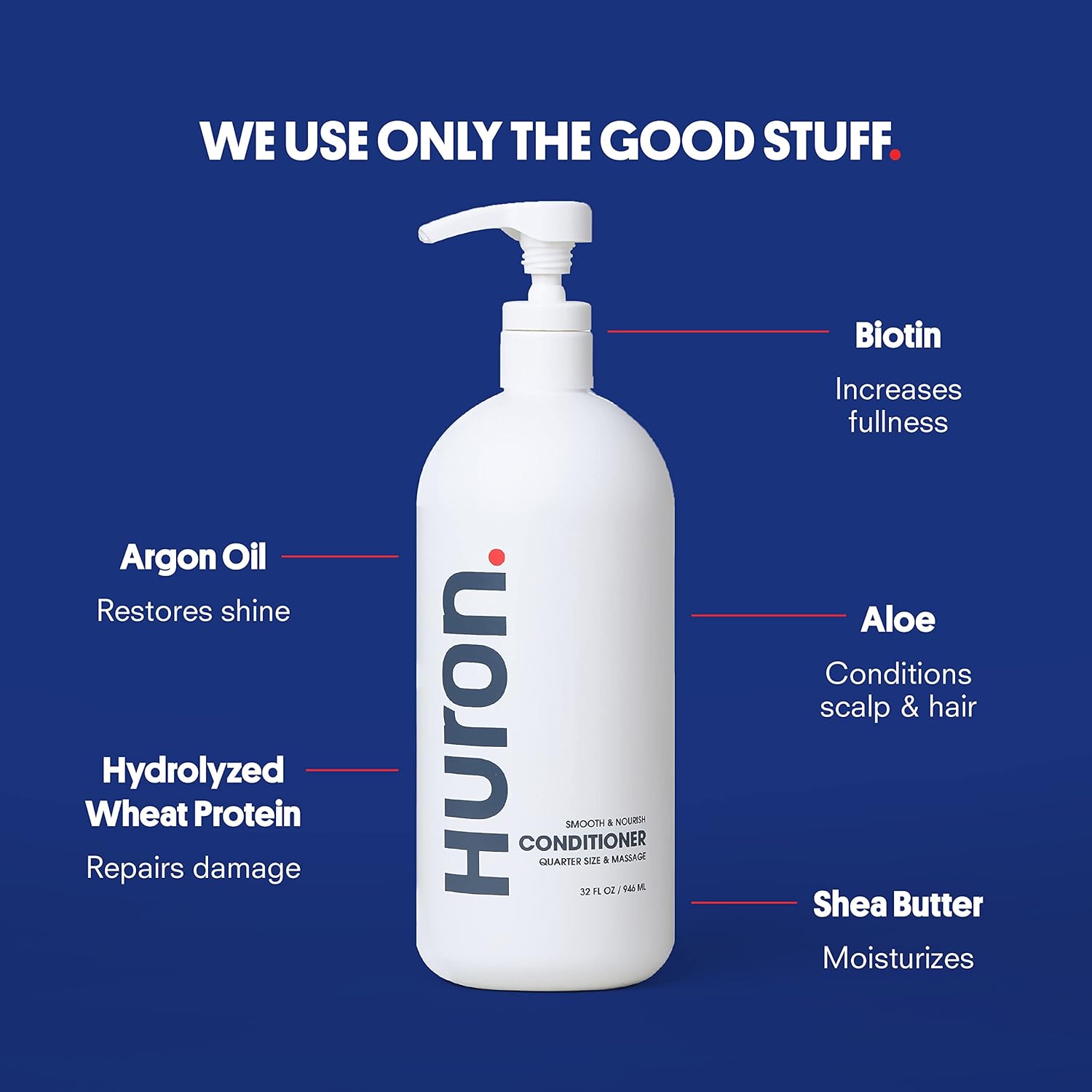 Huron Men’s Conditioner - Lightweight, Hydrating Conditioner - Eliminates Frizzy Hair, Moisturizes, & Restores Shine - Clean & Invigorating Scent - 100% Vegan Ingredients & Cruelty-Free - 32 Fl Oz