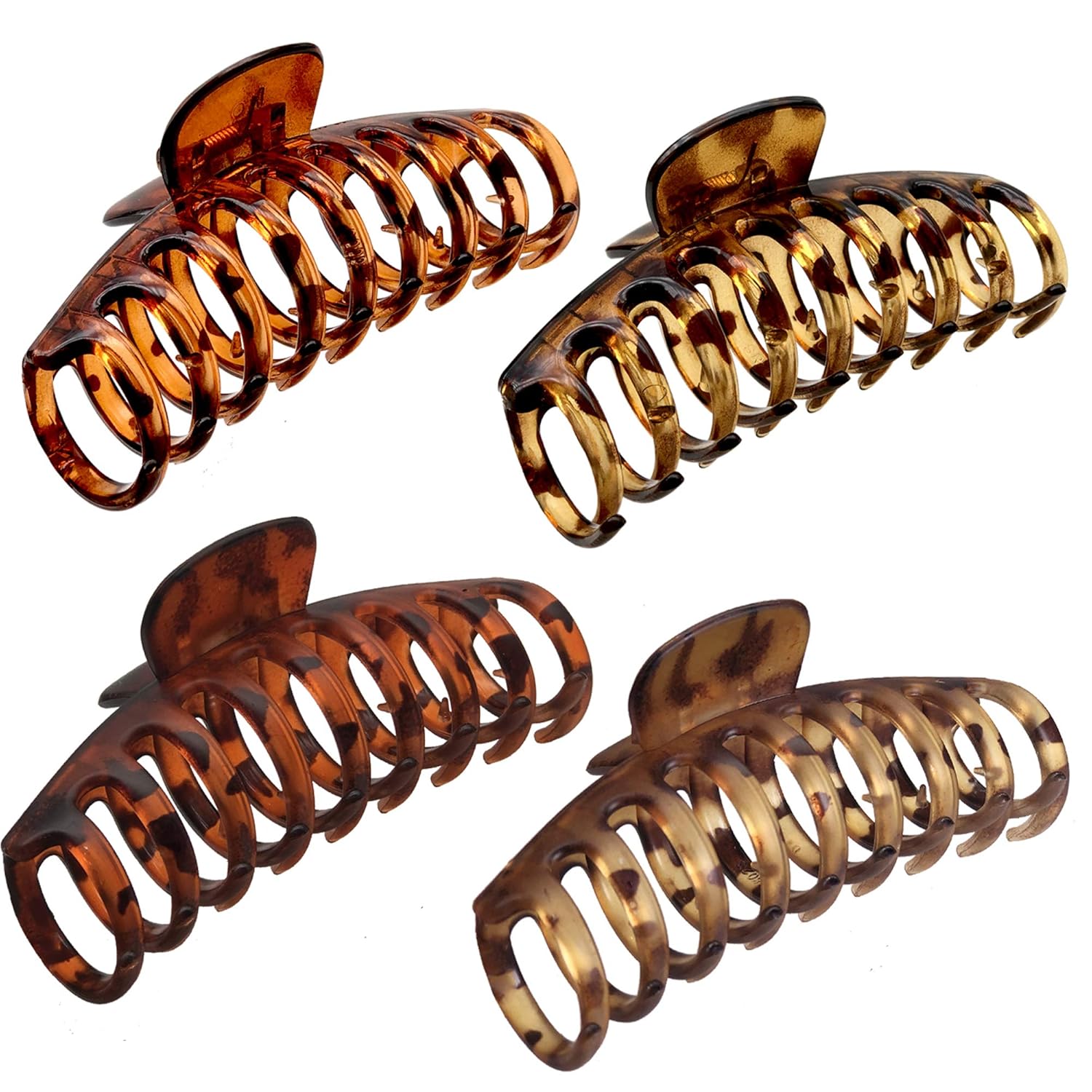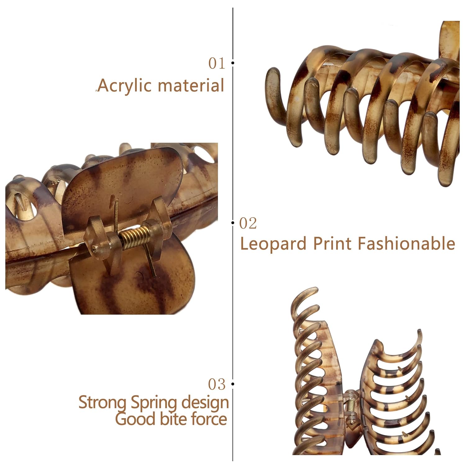 - Product Information: Leopard print Hair Barrettes for women. French design handmade no slip strong hold hair claws for thick hair. (2pcs matte color, 2pcs bright color)Perfect for creating easy hairstyles. Make you more charming and elegant.