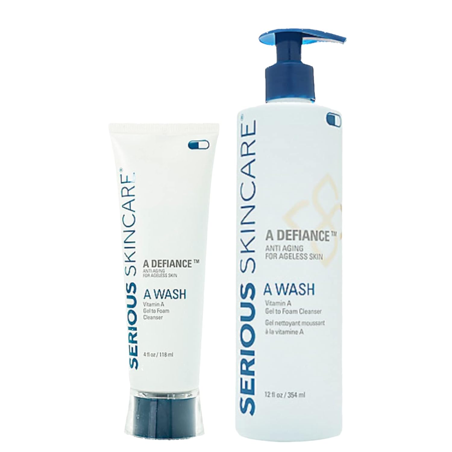 Serious Skincare - Gentle Exfoliating Retinol Facial Cleanser - Skin Hydrating Gel to Foam Vitamin A Wash - Clarify Pores - Removes Makeup, Oil, SPF - Avena Sativa Extract - 12 Oz + 4 Oz