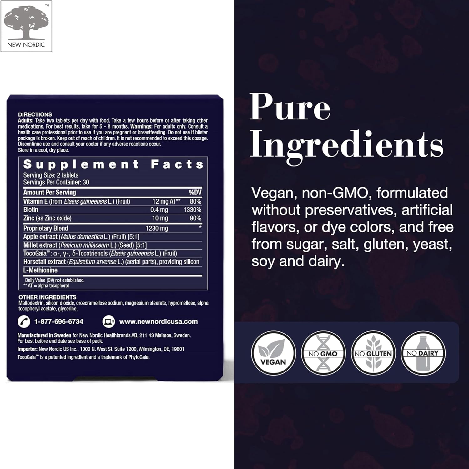 NEW NORDIC Hair GRO, Hair Growth Supplement, Biotin & Palm Fruit Extract Tocotrienols for Natural Regrowth, 60 Count (Pack of 3)