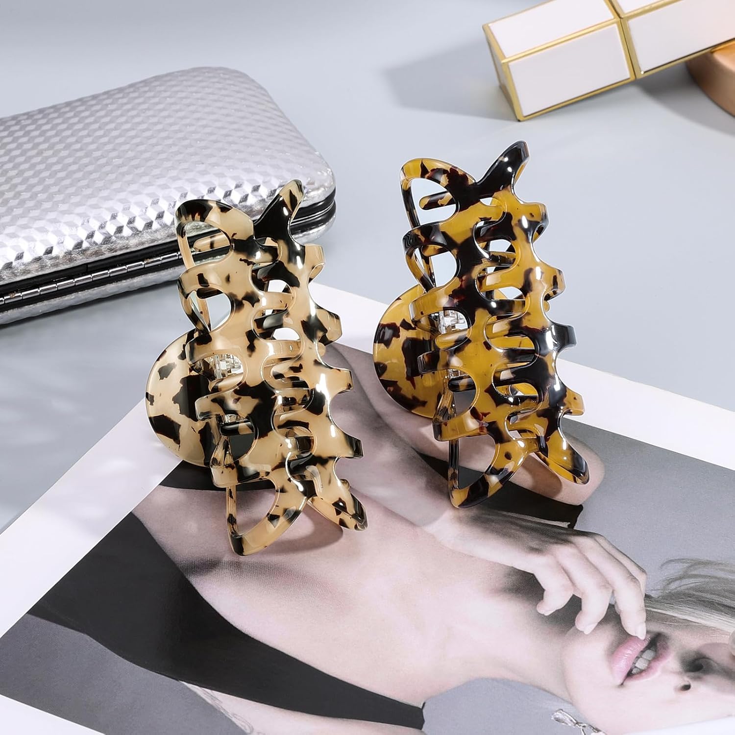 Shinowa Hair Clips, 2-Pack Bohemian Tortoise Shell Hair Claw Clips Strong Hold Big Hair Jaw Clips for Thick Hair, Hair Accessories for Women Girls, Leopard
