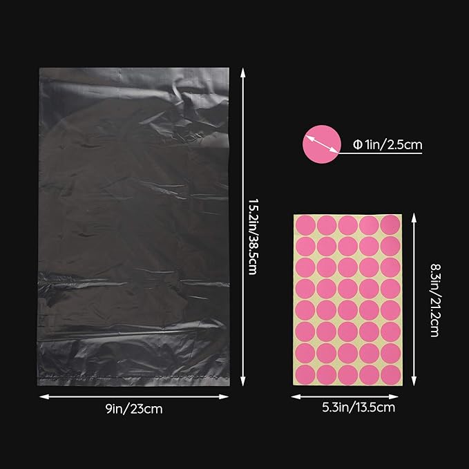 - 【Liners Size--Small】Bag--9" x 15.2" (23 x 38.5 cm); Totally 100 counts of plastic bags and 200 of stickers.