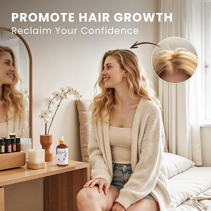 - Promote Hair Growth: Our rosemary oil, rich in natural actives, improves blood flow for thicker hair