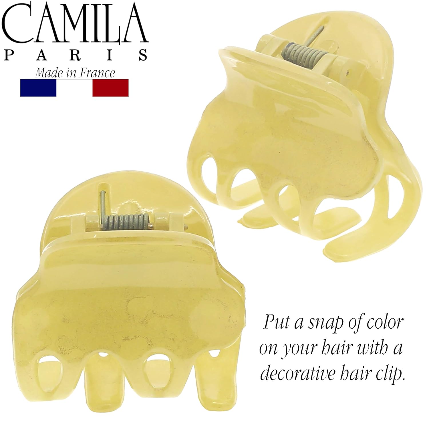 Camila Paris CP3132 French Hair Clip for Women, Set of 2 Small Yellow Girls Hair Claw Clips Fashion Durable Hair Accessories for Women, Luxury Ladies Strong Hold No Slip Grip Clamp, Made in France