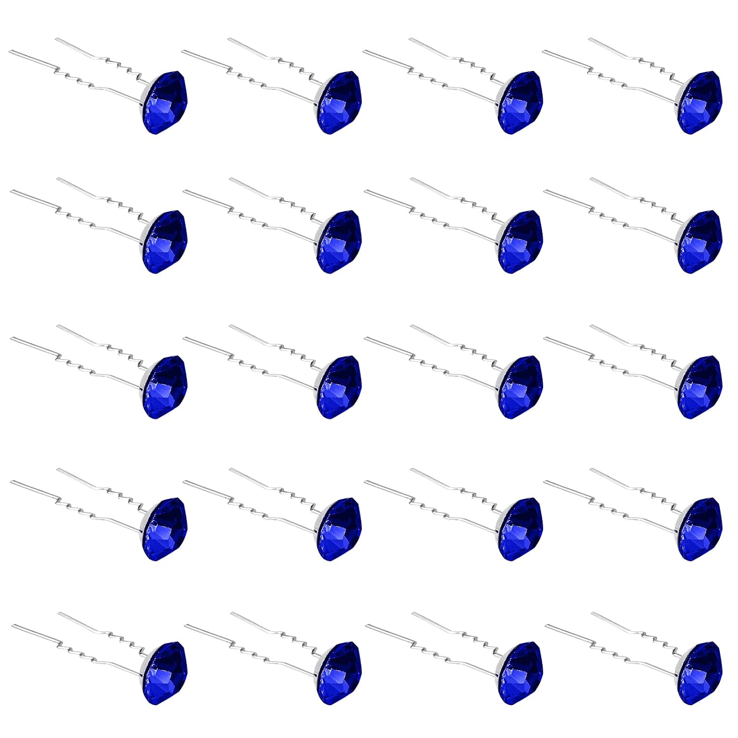 20 Pack (Navy) Rhinestone Hair Pins Crystal Hair Clips for Bridal Wedding Women Hair Jewelry Accessories, with Clear Container