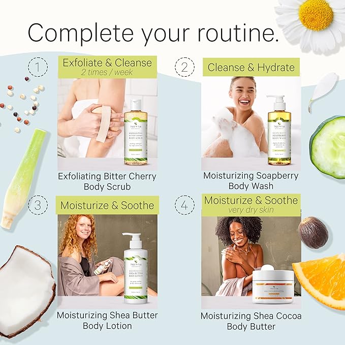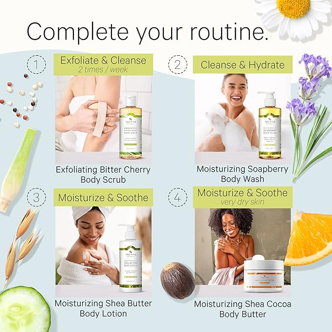 - ๐ฑ FRAGRANCE FREE LOTION FOR DRY SKIN: Unlike other organic body lotion, our body lotion balances your skin's pH thanks to the amazing Soapberry! Experts agree that when you balance your skinโs pH instead of coating it in oils, it naturally balances its own moisture. We simply added our Moisturizing Blend (Shea Butter, Cocoa Butter, Oatmeal, Chamomile, Aloe Vera) to create a body lotion that nourishes and calms dry skin, leaving moisture without residue!