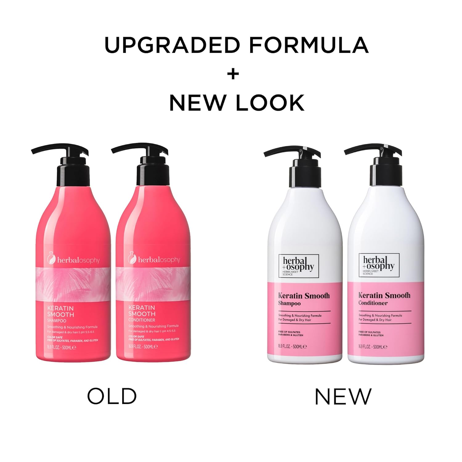 Herbalosophy Keratin Shampoo & Conditioner Set, Nourishing & Moisturizing Formula for Damaged & Dry Hair, Highly Hydrate & Repair for Color Treated Hair, Sulfate,Parabens & Gluten Free, 2 x 16.9 Fl Oz