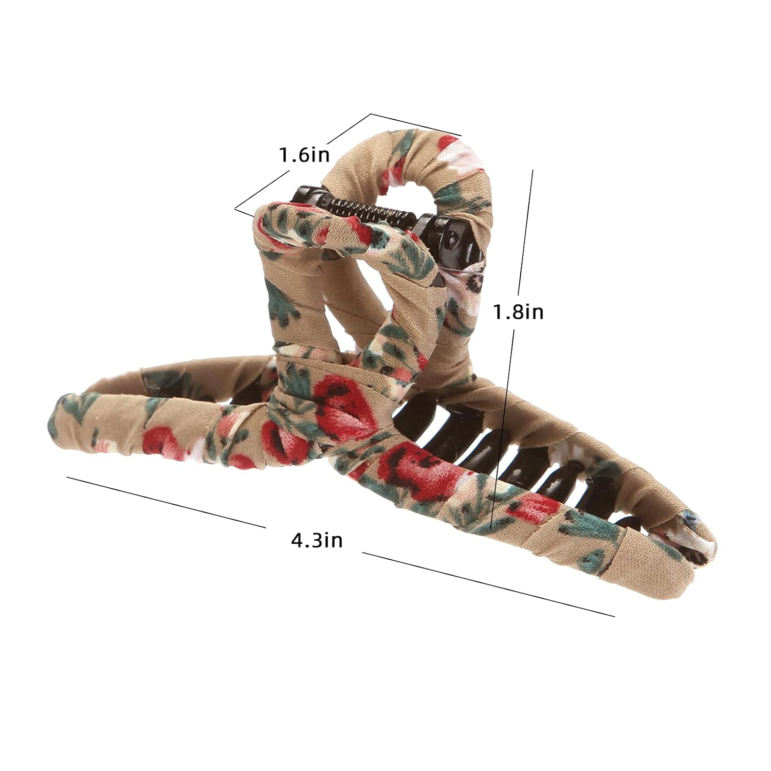 ONEYE Hair Claw Clips Nonslip Wrapped Cloth 4.3 Inch Large Hair Clips for Women Girls Floral Banana Hair Clip Strong Hold for Thin Hair Thick Hair Long Hair Fashion Hair Accessories with 4 Colors