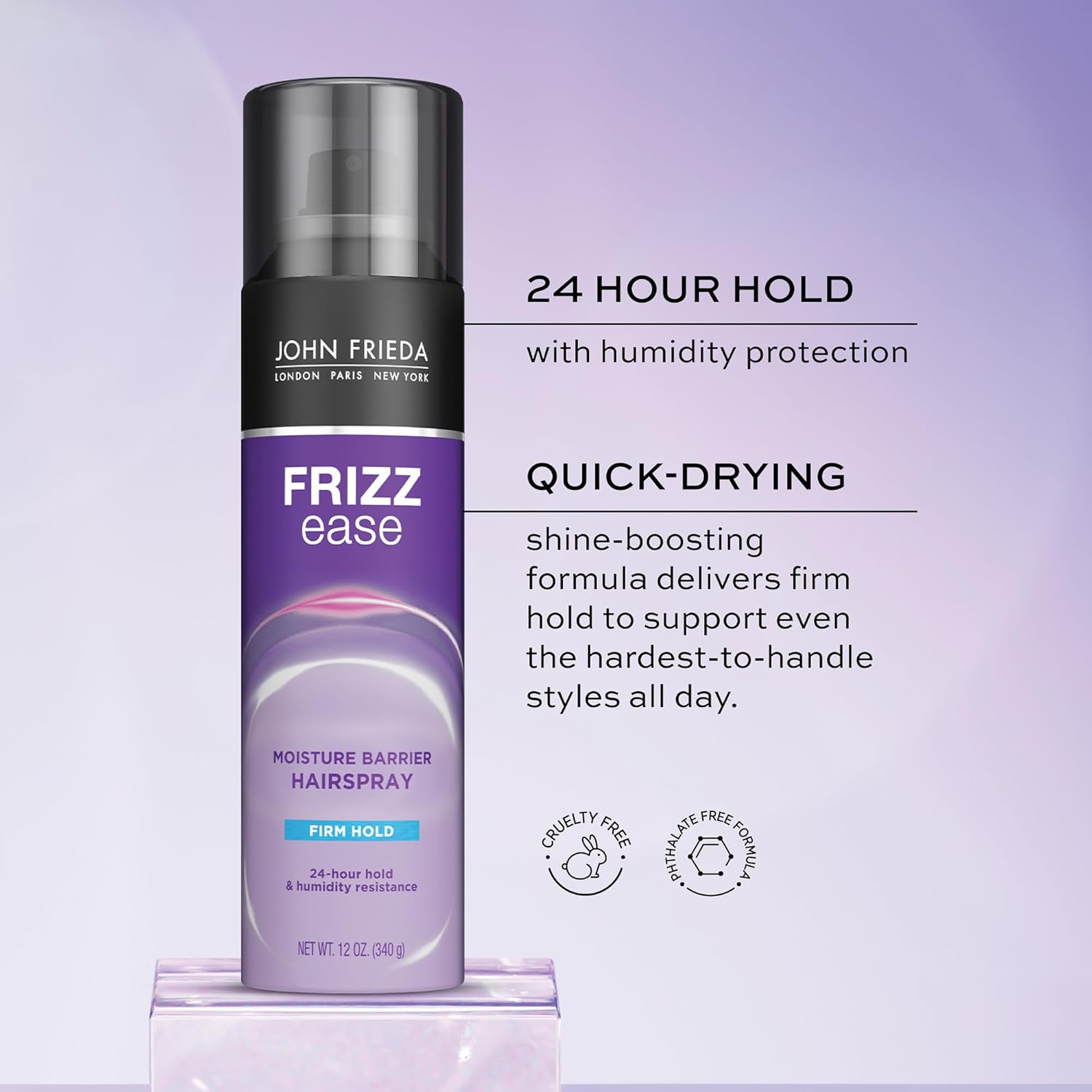 - SMOOTH YOUR FRIZZY HAIR - John Frieda Moisture Barrier Hairspray helps to block out weather-induced frizz by repelling humidity for up to 24 hours