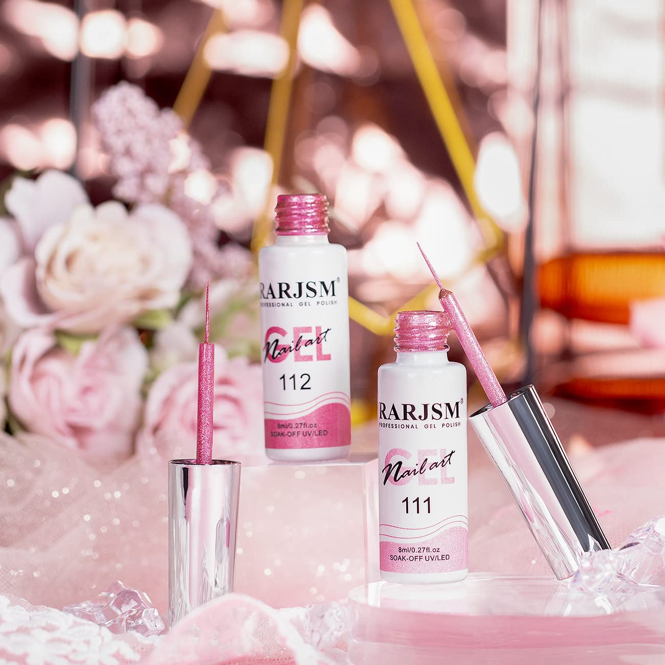 RARJSM Metallic Gel Liner Nail Art Pink,Glitter Painting Gel Nail Polish 2PCS Set,Mirror Chrome Hot Pink Drawing Line Art Gel with Thin Brush Nail Design Line Wire Curing Requires 8ml DIY Manicure