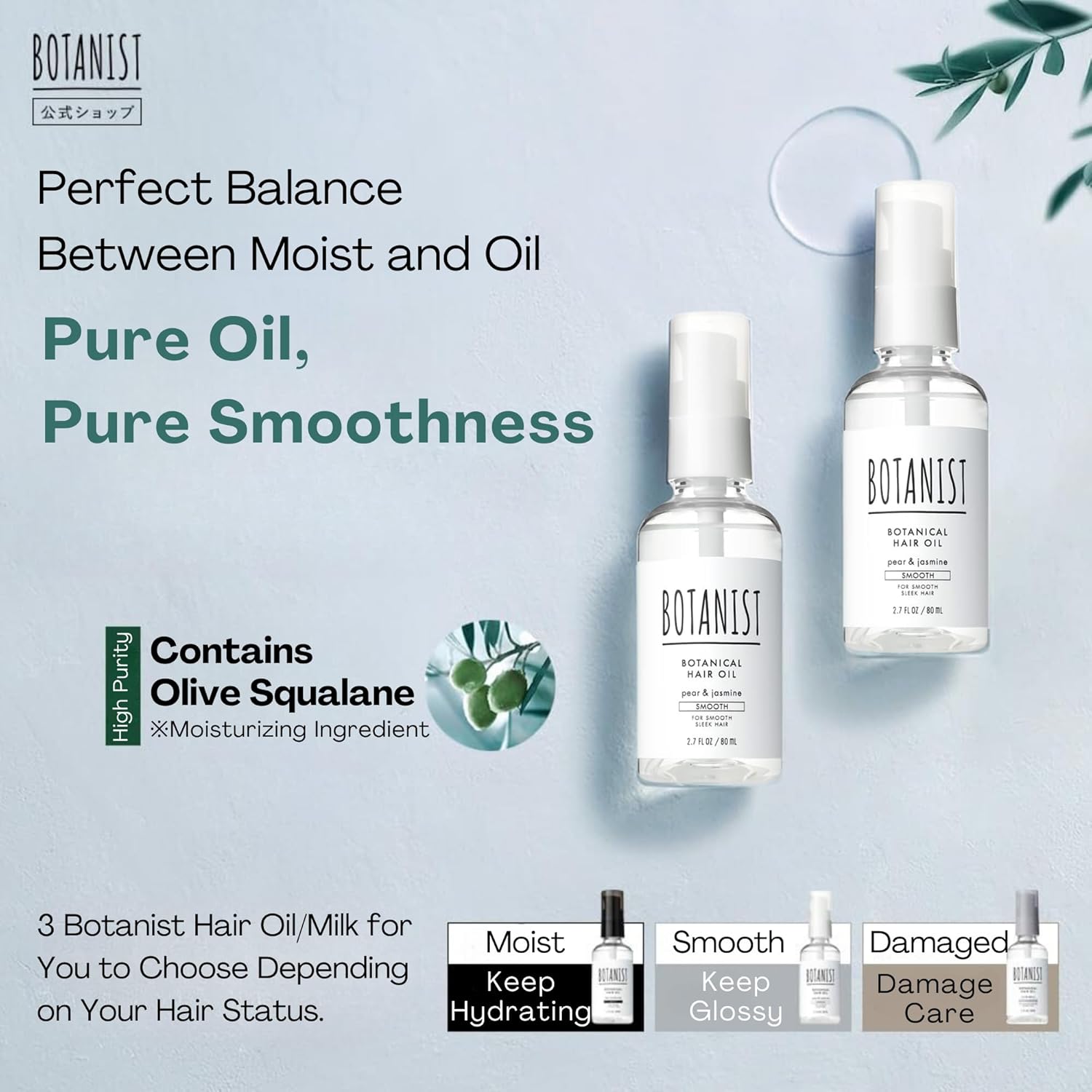 Botanist Natural Hair Oil for Frizzy Hair, Organic Hair Oil for Women, HAIR OIL Spray for Men with Jojoba Oil, Protein, Organics Extract & Squalane, Hair Scalp Oil from Japan 2.7 Fl Oz Pear & Jasmine