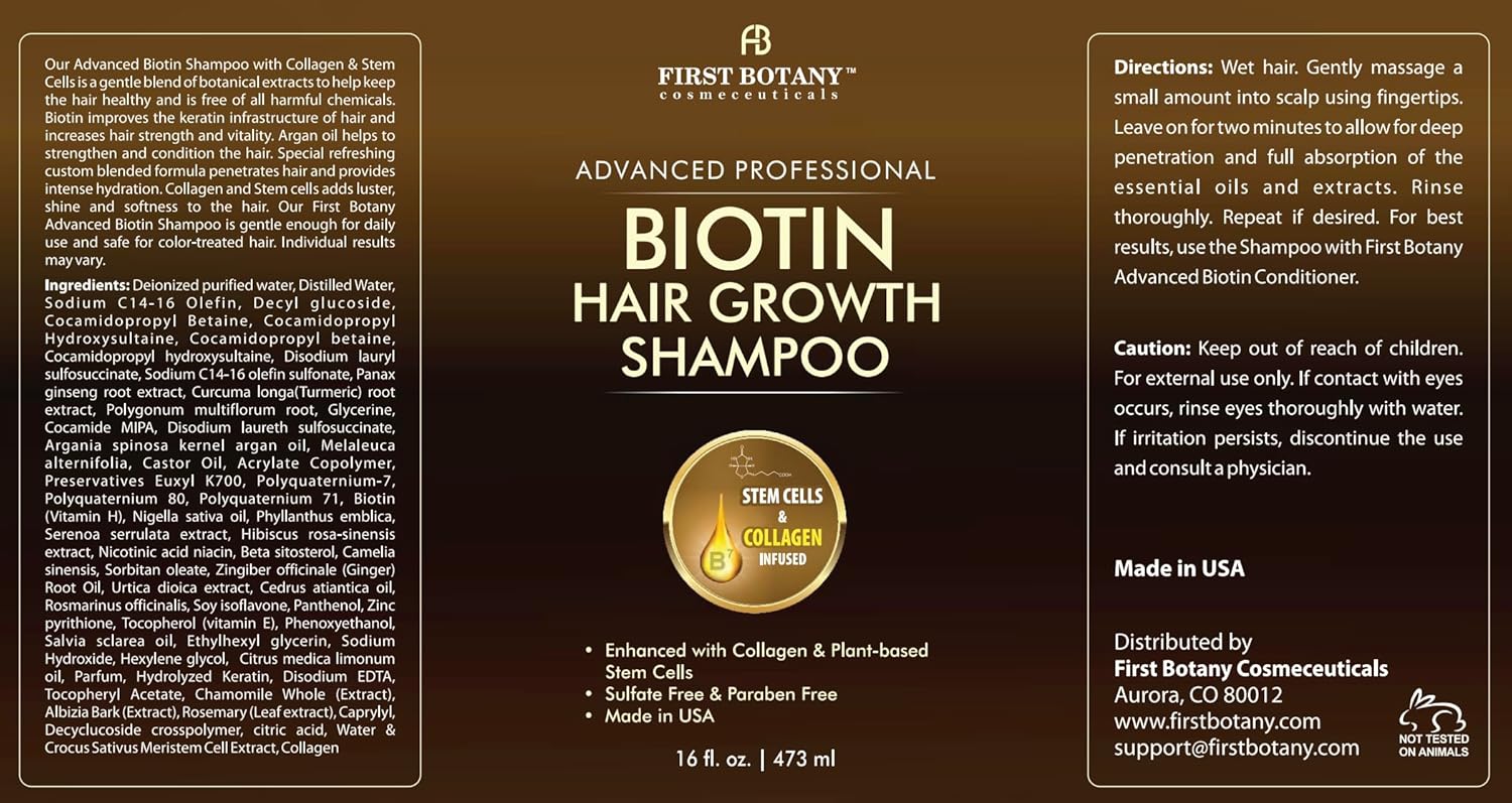 First Botany, Biotin Hair Growth Shampoo Conditioner Anti Hair Loss Thickening formula Collagen & Stem Cell For Hair Regrowth Anti Thinning Sulfate Free For Men Women Anti Dandruff Treatment 16 oz x2