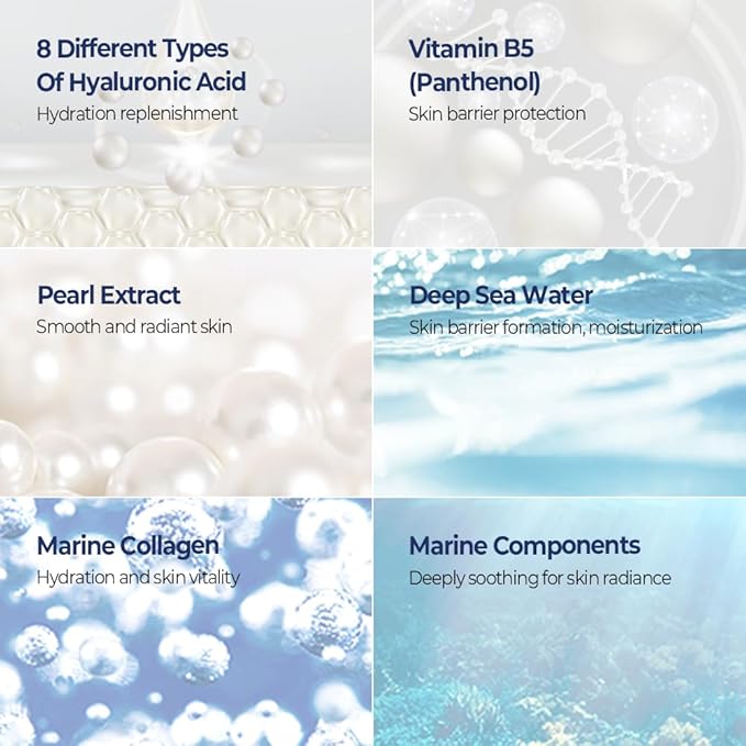 - Marine Complex Benefits: Enriched with a potent marine complex, our formula not only hydrates but also soothes and calms the skin. Experience a radiant glow and a complexion that looks and feels refreshed.