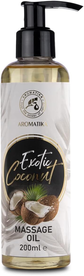 Massage Oil Coconut 6.8 Fl Oz (200ml) - Body Oil with Coconut - Jojoba - Almond - Grapeseed - Peach Kernel Oils - Aromatherapy Oil - Relax Oil - Good Sleep Oil - Calming Oil