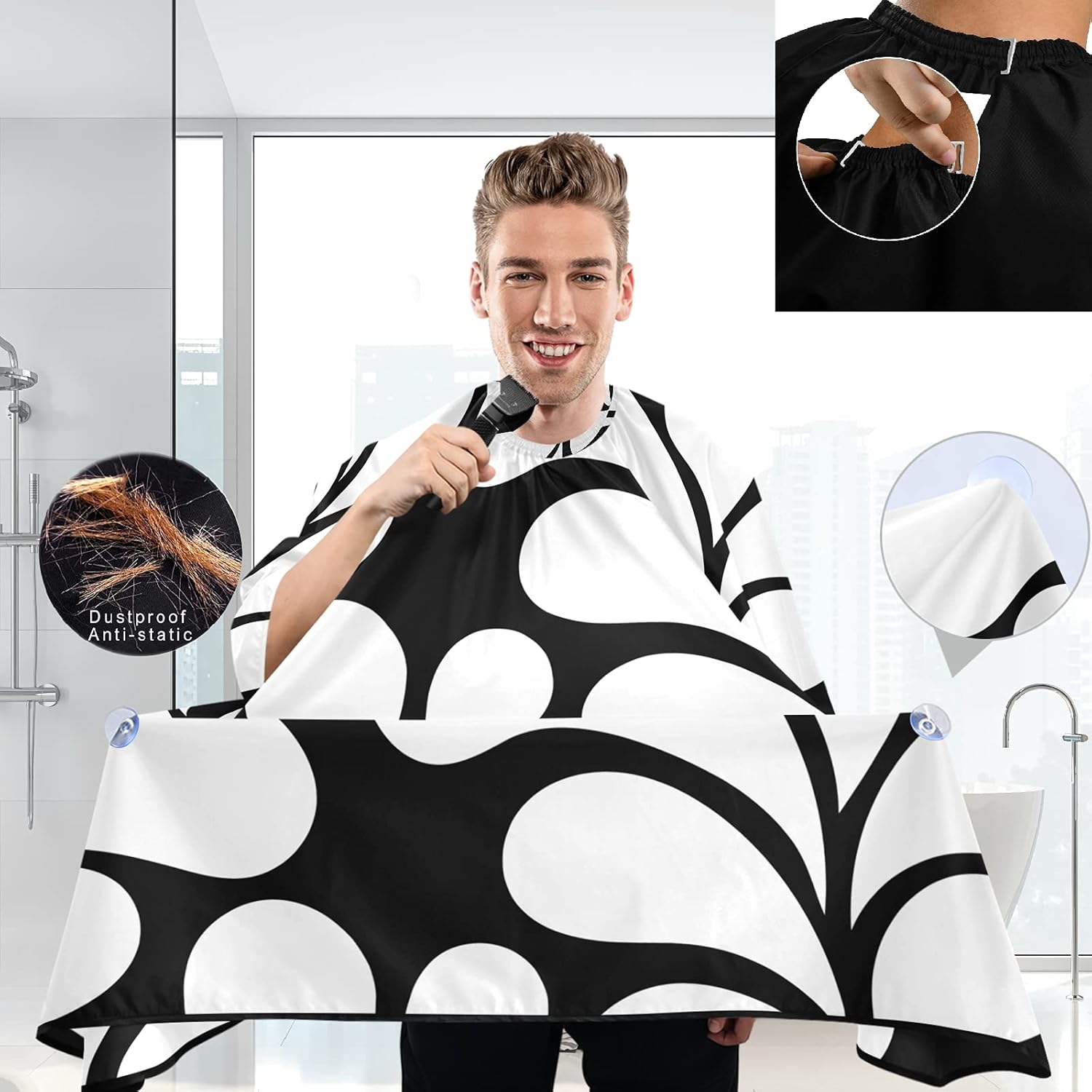 - ✅SUITABLE FOT ADULT AND CHILDREN: Adjustable elastic neckline to fit varying neck sizes. Both adult and children can use.Fashionable hairdressing cape fit well for women and also men. Flexible and long enough to meet demand of most people.(Size:W57 x L65 inches)