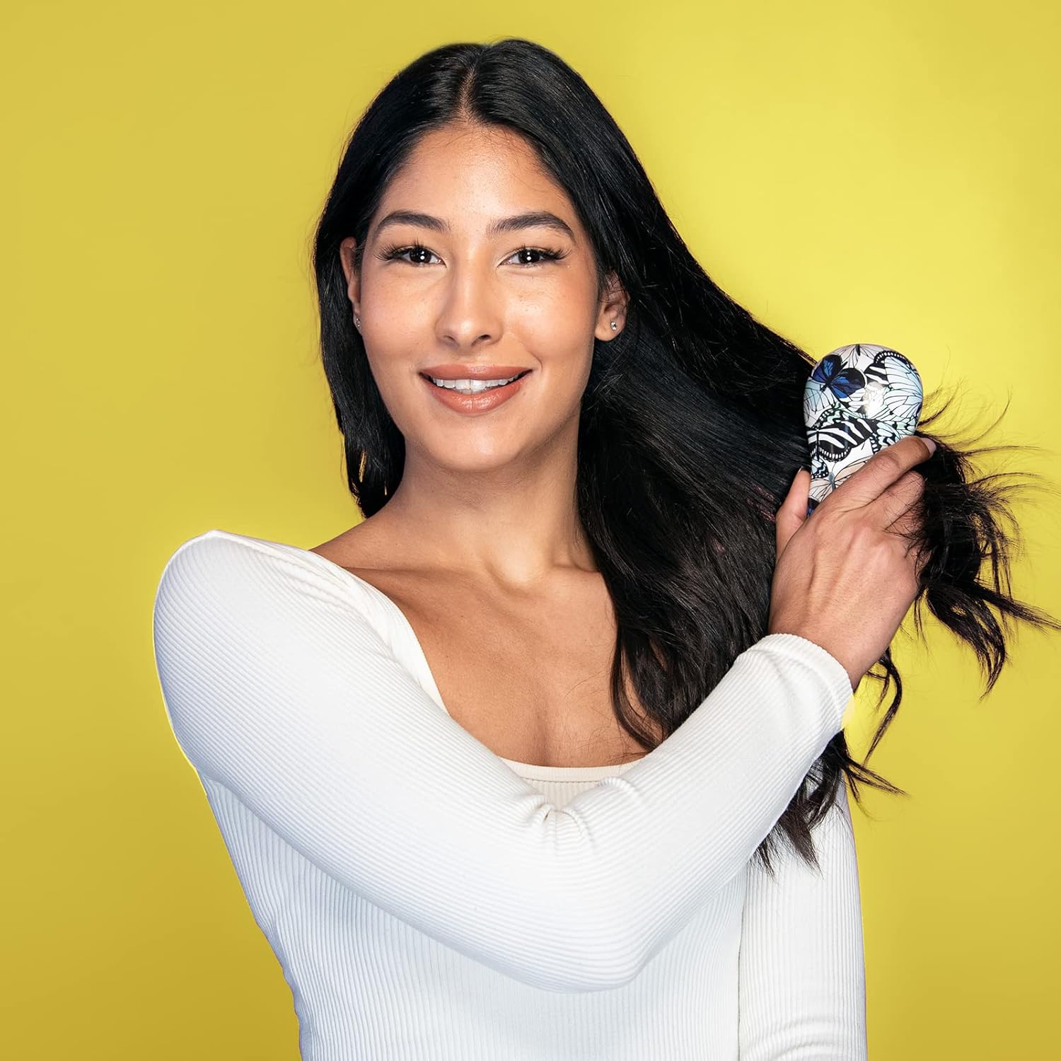 Hand Grip Brush, Gentle Detangling, Detangler Hair Brush for All Hair Types. For use on Wet or Dry Hair (Blue Butterfly)