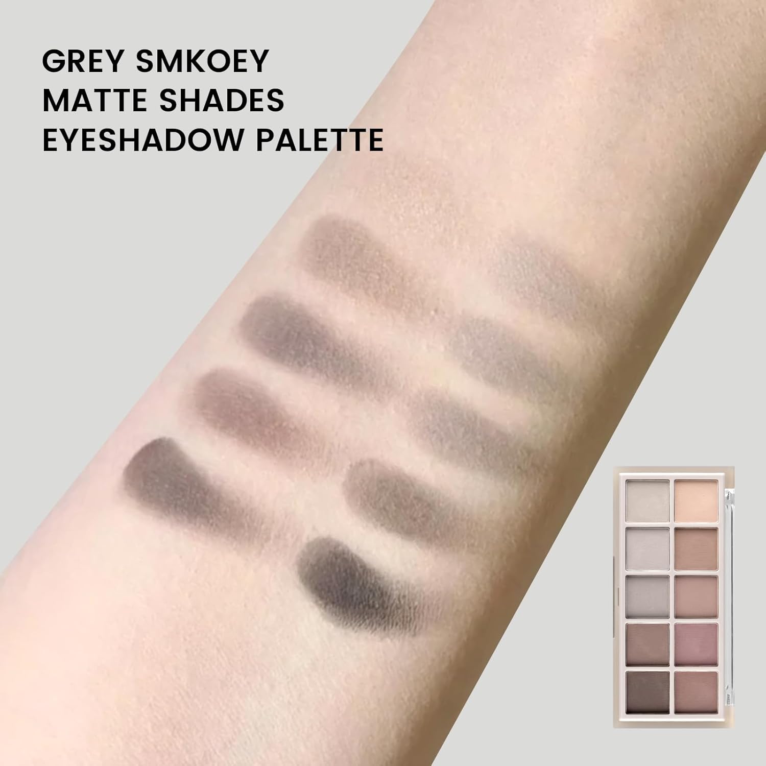 KYDA 10 Colors Nude Eyeshadow Palette, Neutral Grey Smokey Eye Pallete, Taupe Brown Matte Eye Shadow Palette, Ultra-Blendable, Long Lasting Natural Eyeshadow for Older Women, Smokey Grey