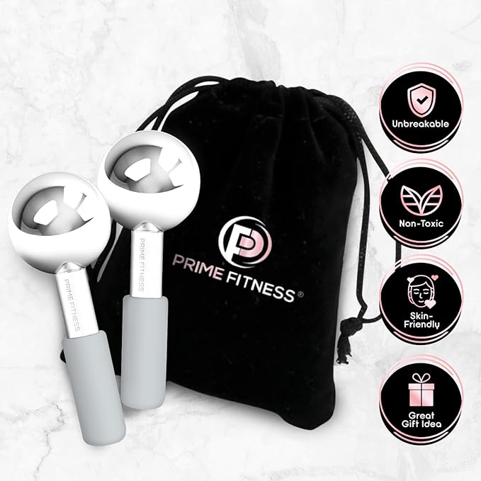 Ice Globes for Facials | Unbreakable Steel Cooling Roller | Cryo Sticks for Face | Massager for Face Neck & Eyes | Skin Care for Dark Circles, Puffiness, Wrinkles, Collagen Production (GRAY)