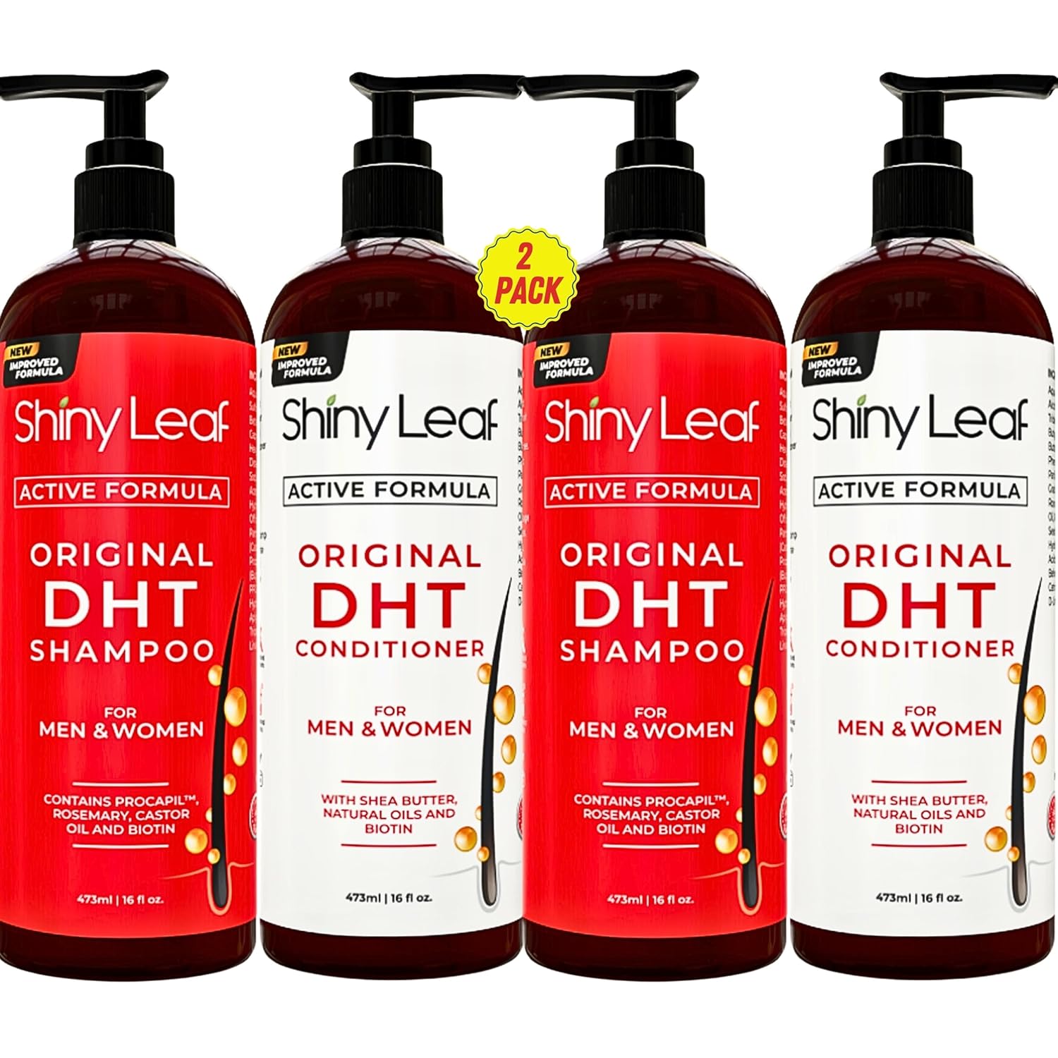 - BLOCKS DHT FOR HAIR GROWTH – Blocking DHT, the hormone responsible for hair loss, is the main benefit of using this hair growth shampoo and conditioner set. Natural DHT Blockers Rosemary Leaf Oil and the powerful Procapil formula help keep your hair follicles healthy.