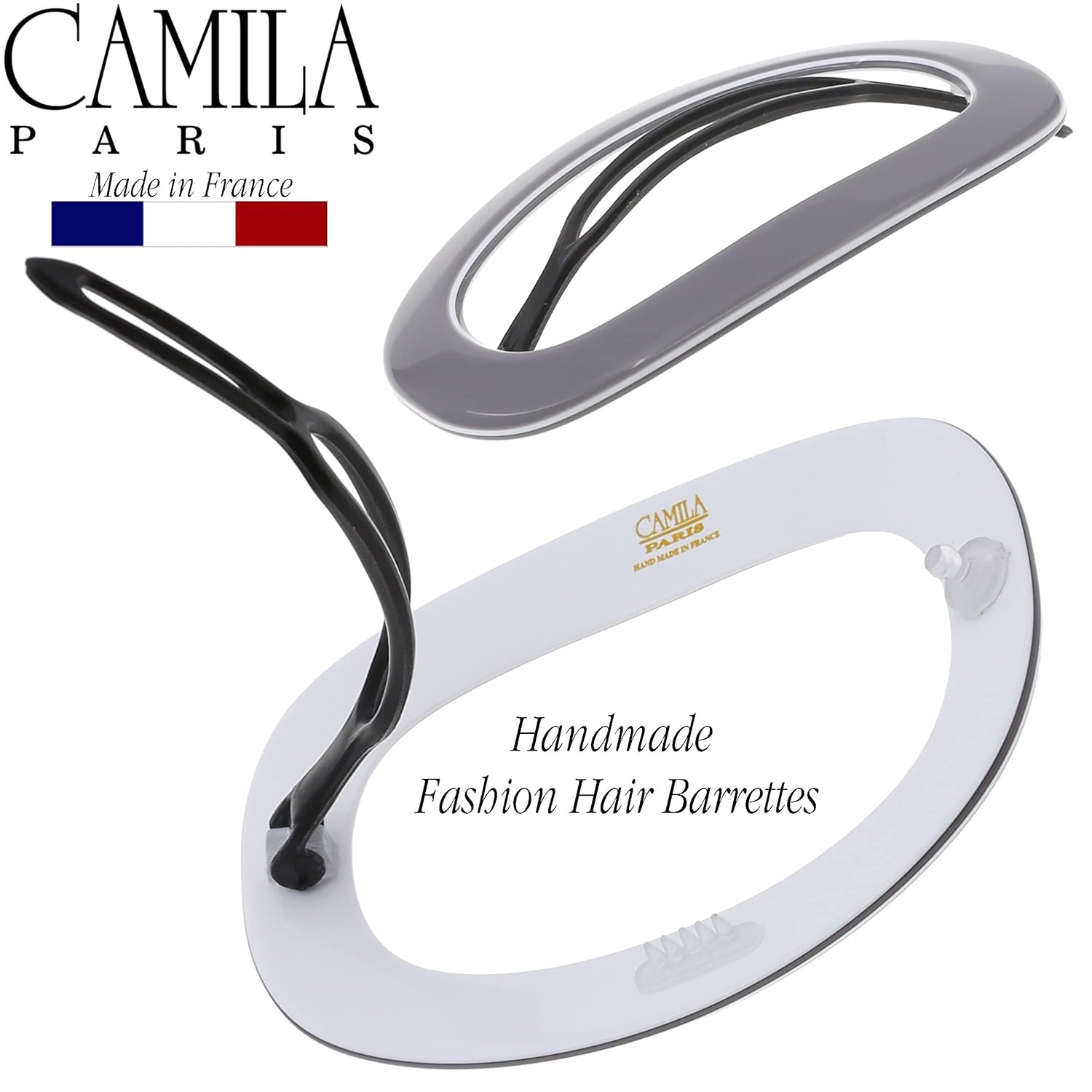 Camila Paris CP3356 French Hair Barrette Clip for Women, Handmade, Gray White, Slide-in Metal-Free Closure, Strong Hold Grip Hair Clips for Girls, No Slip Durable Hair Accessories, Made in France
