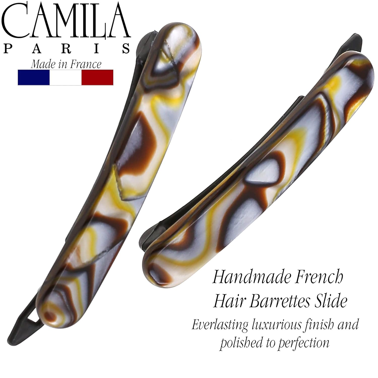 Camila Paris CP3377 French Hair Barrettes Clips for Women, Handmade Onyx, Girls Side Slide-in Barrette Clip, Hair Accessories for Women. Strong Hold No Slip Grip Durable and Styling, Made in France