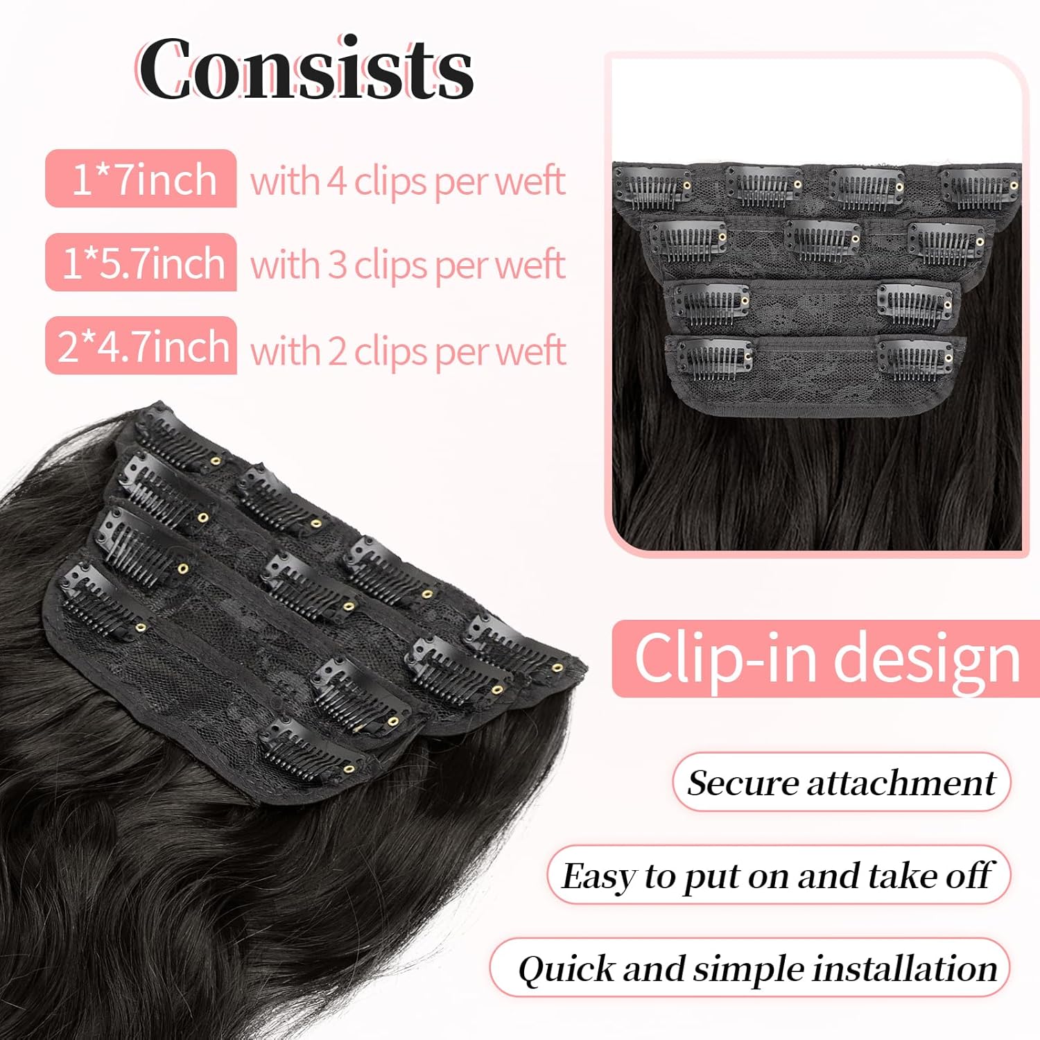 - ๐ธใMore Volumeใ--At 190g 20 inches,Each pack includes: 2 pieces of 5 inches wide 2 clips in wefts; 1 piece of 6 inches wide 3 clips in weft; 1 piece of 7 inches wide 4 clips in weft.