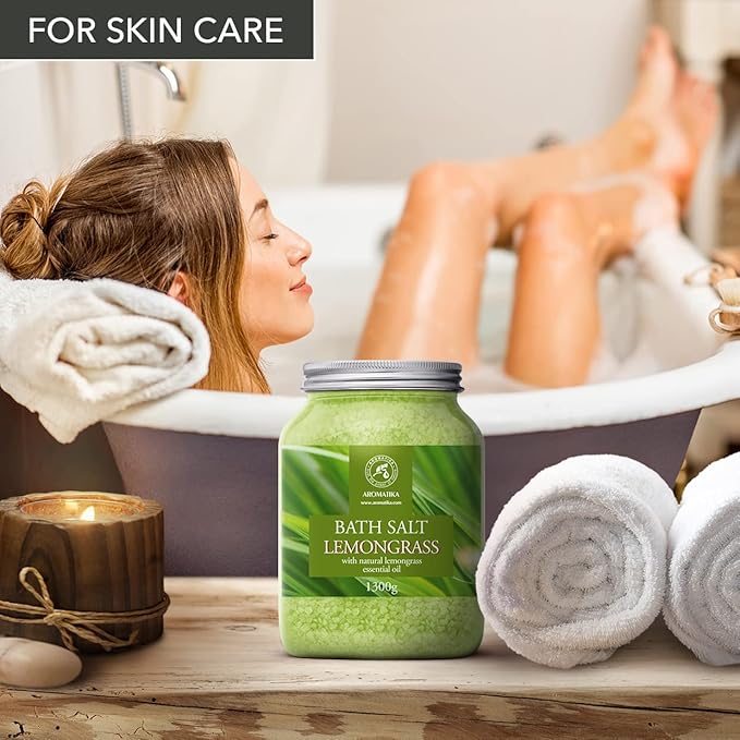 - BATH SEA SALT LEMONGRASS: with natural Lemongrass essential oil - great relaxation, calm and good mood, best benefits for women, men and kids.