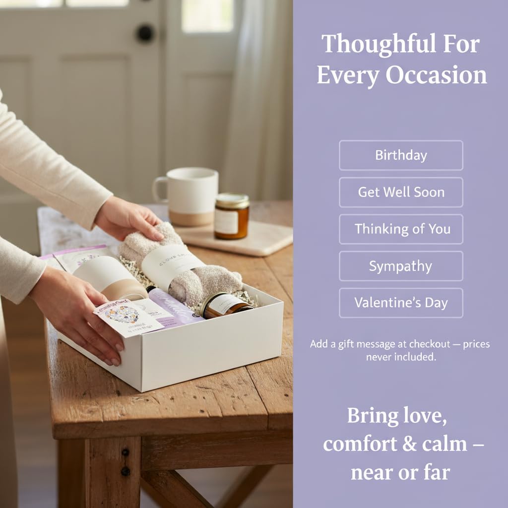- Send a Hug from Anywhere: Perfect for get well soon, sympathy, after surgery, birthday or just because. This care package delivers comfort and joy to the doorstep—so you can show you care even when you can’t be there in person.