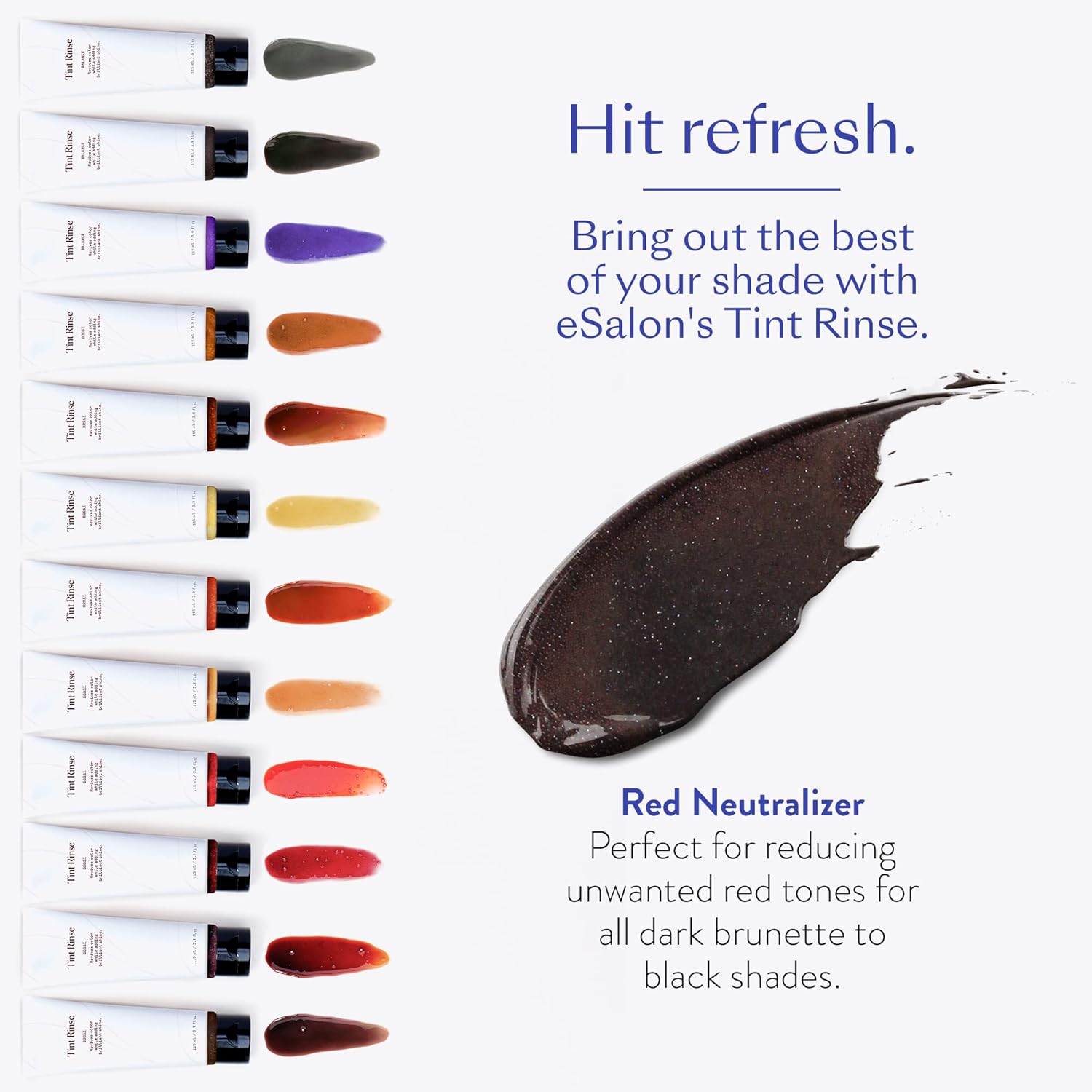 - Hit Refresh: Our secret weapon, the eSalon Tint Rinse in Red Neutralizer, is a color-enhancing treatment that uses temporary pigments to bring out the best of your shade, helping to keep a rich shade vivid, take things down a notch or enhance your natural color. "Balance" treatments help tone down warmth or unwanted tones.