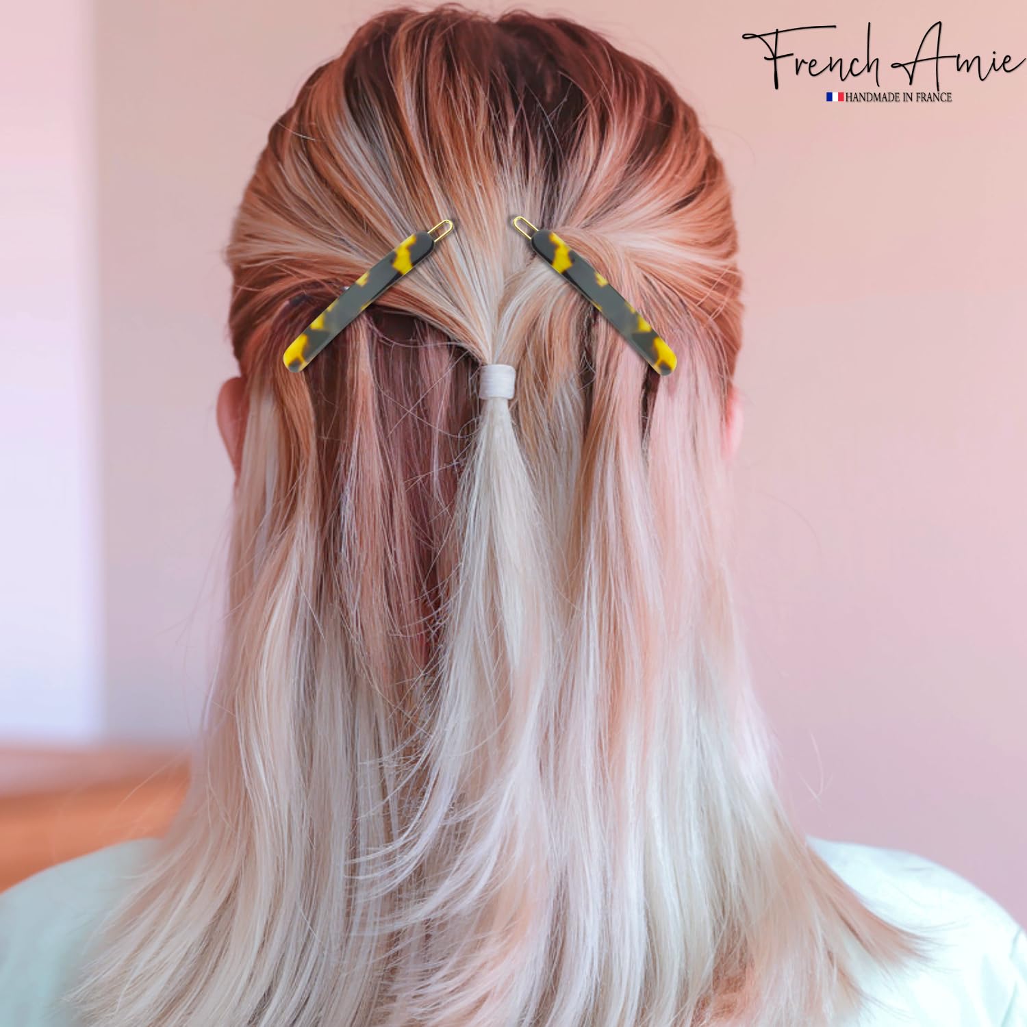 French Amie Rounded Oblong Small 2.5" Cellulose Set of 2 French Hair Clips Tige Boule Handmade Girls Side Slide-in Hair Barrette Clip (Yellow Tokyo)