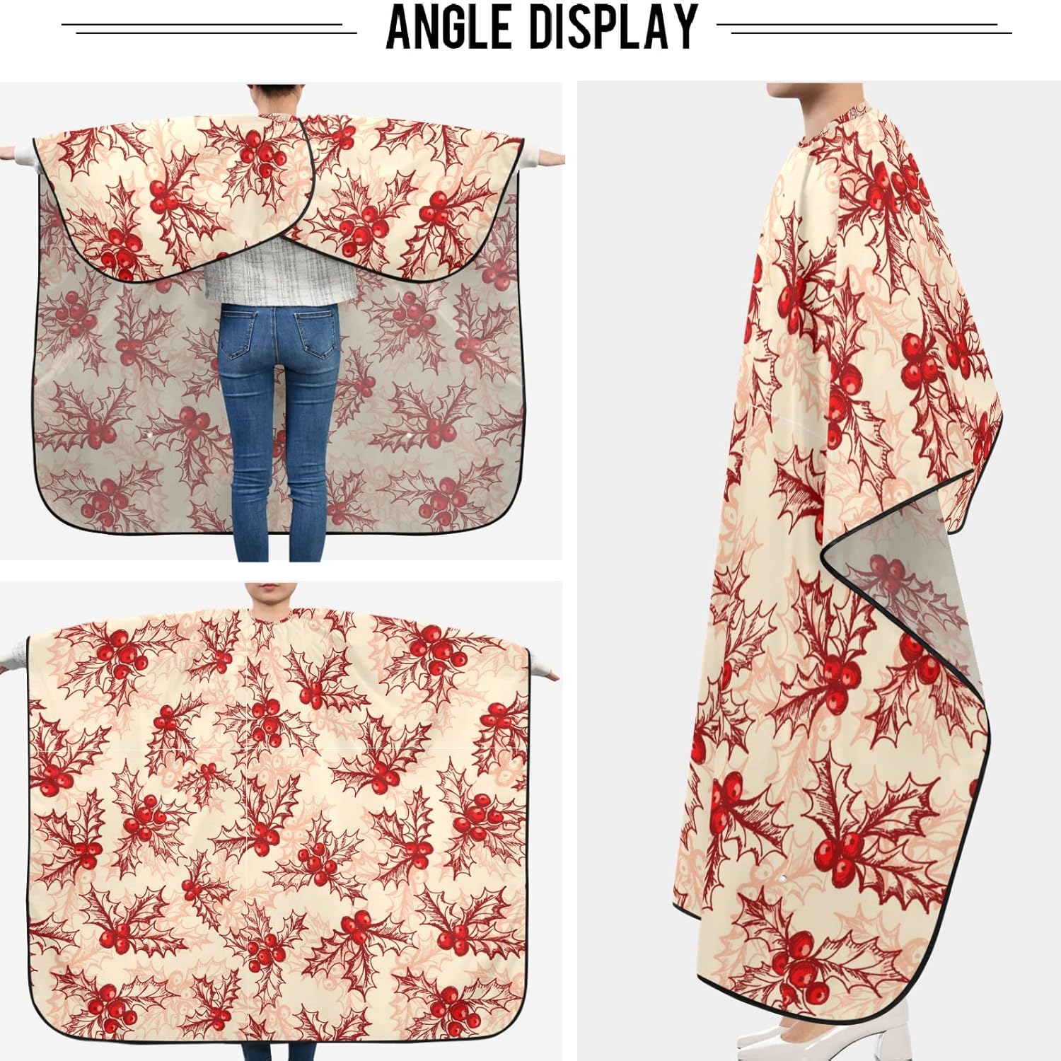 visesunny Barber Cape Holly Berry Pattern Polyester Hair Cutting Salon Cape Apron Anti-Static Haircut Water-Resistant Shaving Cloth Beard Shaving Bib Hairdressing Cape