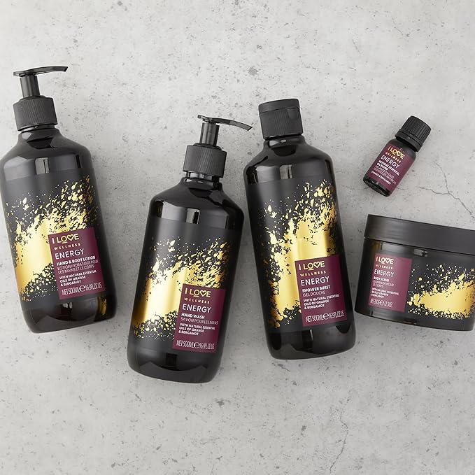 - ENERGIZING HAND AND BODY LOTION. Elevate your mood and awaken your senses with our I LOVE Wellness Energy Hand and Body Lotion. Infused with a refreshing blend of ginger, orange, and bergamot essential oils, it boost energy with every application.